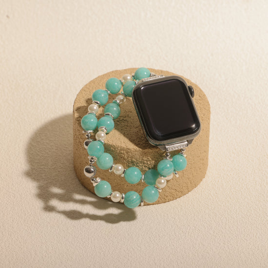 Tranquility meets timeless design in Celadon Calm. Combining the soothing turquoise hue of Amazonite with the soft glow of pearls, this double-strand band evokes balance and mindfulness — reminiscent of celadon porcelain and morning mist.