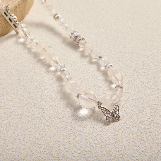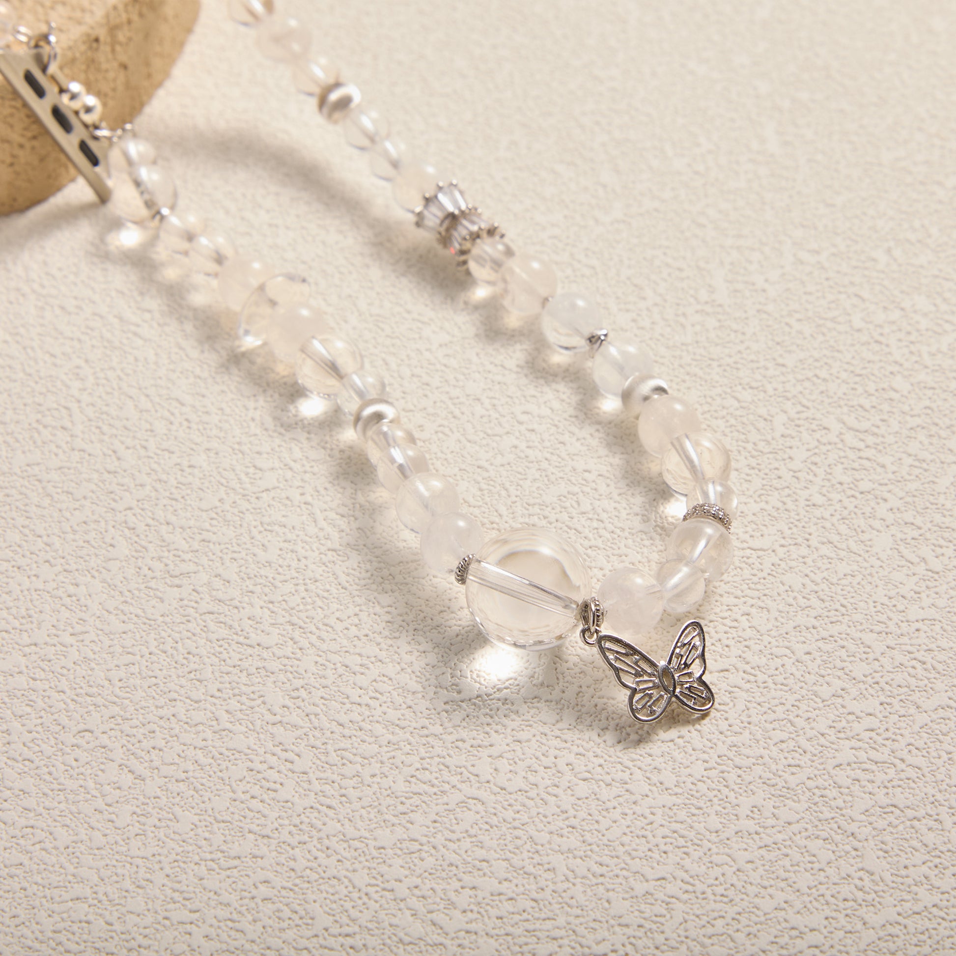 Ethereal and pure, this design unites the transparency of Clear Quartz with the soft luminescence of Moonstone, evoking the serenity of moonlit clouds. Each bead captures light in a whisper of glow—fluid, feminine, and enchanting.
