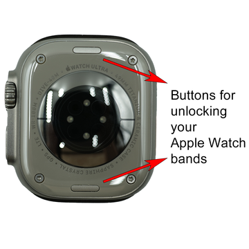 Hold your Apple Watch face-down and locate the two horizontal buttons on the back.