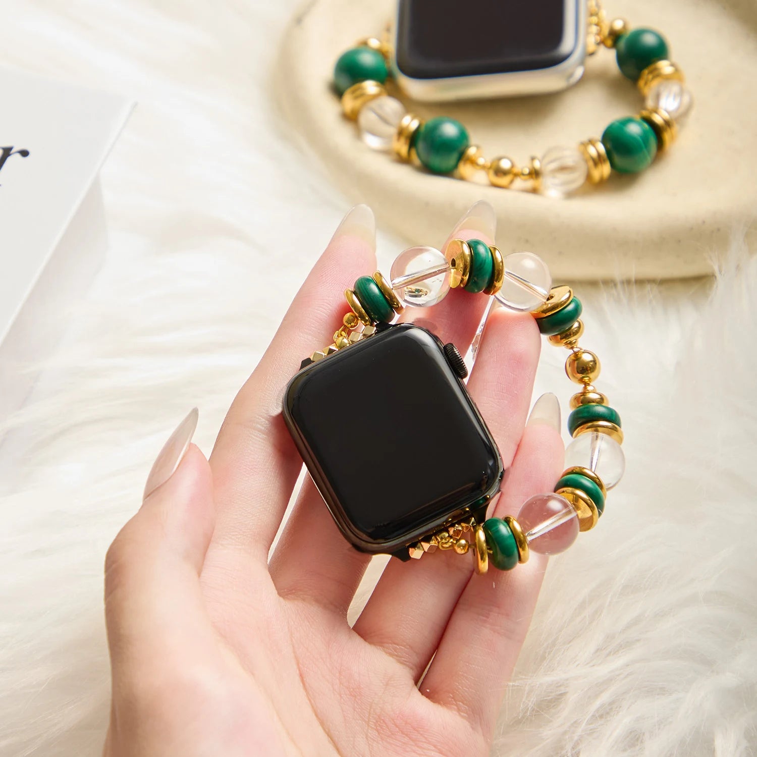 This watch band is meticulously handcrafted using natural gemstones and premium metal components.