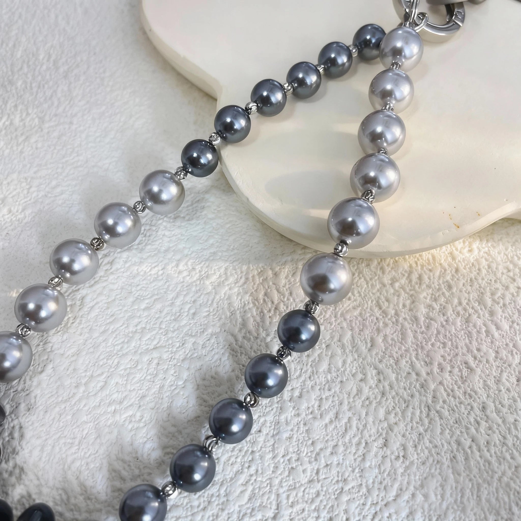 Natural pearls and stones vary in tone and texture.